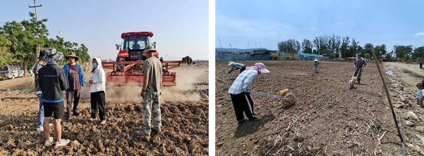 4月21日起,两位驻点研究生和秀山街道相关技术人员开展了首批8亩旱作水稻的种植工作,翻耕、旋耙、理墒、播种、浇水等工作有条不紊地开展。首次驻点工作培养了学生的实践工作能力,也促进了水稻旱作技术的推广。