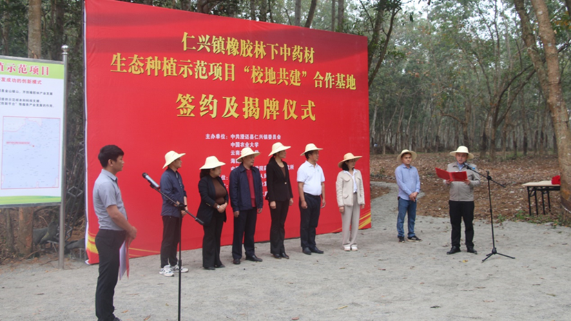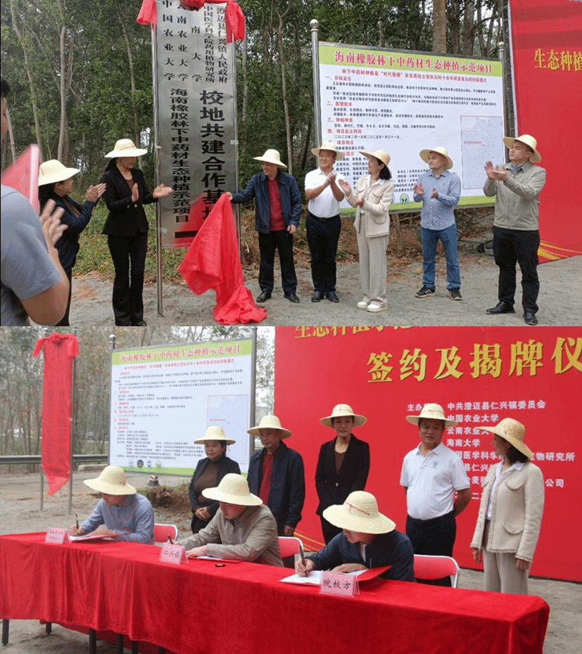 刘屹湘副院长和李迎宾博士作为项目骨干成员,联合中国农业大学、海南大学、中国医学科学研究院药用植物研究所相关专家,与海南金麦穗农业发展有限公司开展的“橡胶林下中药材生态种植示范项目”校地共建合作基地,在海南省澄迈县仁兴镇挂牌成立。澄迈县委常委、统战部部长、县政协党组副书记周卉,副县长黎雅,仁兴镇党委书记王洪,镇长陈学强,中国农业大学三亚研究院常务副院长苏洲,色情卡通