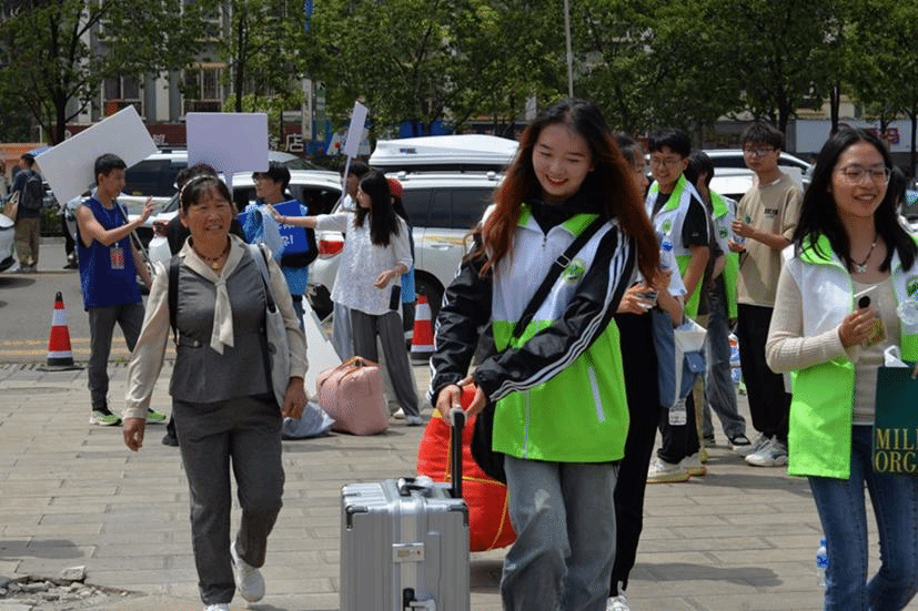 的志愿者永远是冲锋在前的勇士。手提行李、指引道路,每条道路上都有一群绿色忙碌的身影。清晨的秋风瑟骨,午后的烈日炎炎,他们都没有望而退却,而是迈着一步步踏实的步伐,饱含对新生的热切期待,将新生们带到一个个目的地。汗水和新生家长们的赞赏便是他们辛苦工作最好的见证,即使双腿发软、汗流浃背,他们也工作直至夜幕降临,将每天的最后一位新同学送到宿舍。