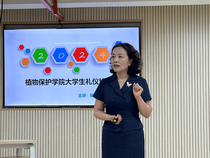 “‘植’争一流”辅导员工作室在“一站式”学生社区路演大厅举办了学院2024年第一期“头雁兴农”领航计划大学生成长训练营第二场活动。工作室负责人李春艳、训练营主要负责人周颖及全体参训学员参加本次活动。活动特邀本校人文社会科学学院副教授、高级礼仪指导师杨红凌为学员进行大学生礼仪培训专题讲座。