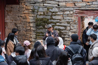 1月9日,师生们分别前往宜良县马蹄湾创意农业示范园区和石林县圭山镇的糯黑村、矣美堵村进行学习考察。在马蹄湾村和河湾村,师生们参观了美丽乡村建设风貌,了解了农文旅结合的发展成果;在糯黑村,师生们探访了石头古寨及边纵队司令部旧址,并参观了村民族博物馆,了解了1949年之前中国共产党在石林建立根据地、为云南解放所做出的贡献,以及彝族文化的传承与保护工作;此外,还学习了乡村与公司合作运营特色村寨的经验。