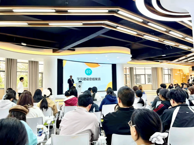 学院党委书记陈斌、党委副书记李春艳、院级学生中心、团委、教学办、辅导员面向2025级本科新生开展学风建设活动。陈斌强调学风建设是高等学校永恒的主题,是全面贯彻党的教育方针,是高等学校实现人才培养目标的重要条件,是衡量办学水平的重要标志。本科生教学办王崇德从学籍管理、培养方案、学位授予等三个方面对学风考风进行了培训。