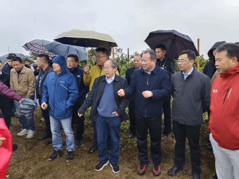 院长黄惠川、副院长刘屹湘及项目组核心成员,有江西、湖南、浙江、贵州等省区农业农村厅相关技术部门领导。还有难能可贵的广东、福建、湖南、江西、四川、云南、广西等柑橘主产区种植大户,自己驱车远道而至现场,见证具有里程碑意义的防控效果。
