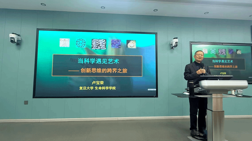 卢宝荣教授以“当科学遇见艺术:创新思维的跨界之旅”为题,作了一场融通文理、贯通教学与科研的专题报告。他从个人科研与教学实践出发,结合复旦大学教育教学改革经验,系统阐述了在“创新驱动高质量发展”背景下,跨学科融通与思维跨界对创新人才培养的重要意义。