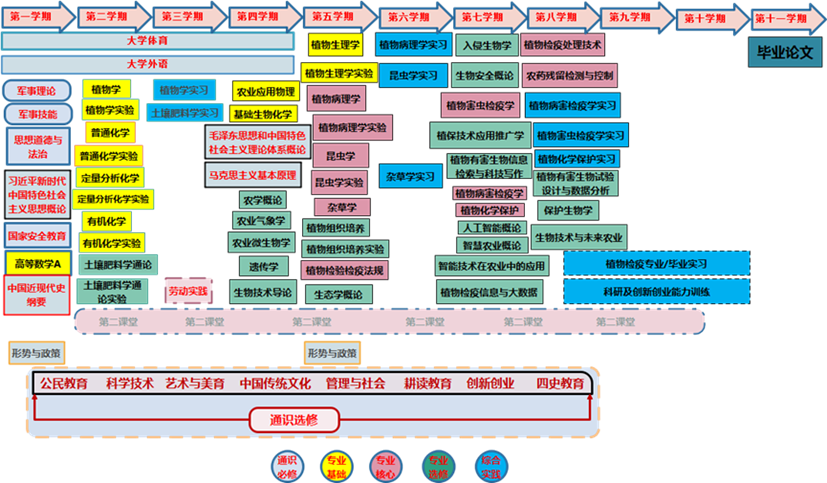 植物病理学、昆虫学、杂草学、植物病害检疫学、植物害虫检疫学、植物检验检疫法规、植物化学保护、植物检疫处理技术、农药残留检测与控制、分子生物学导论。