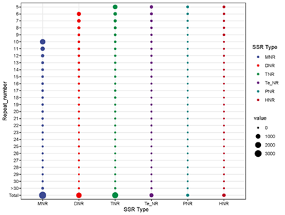 图5 单、二和三核苷酸简单序列重复(SSR)