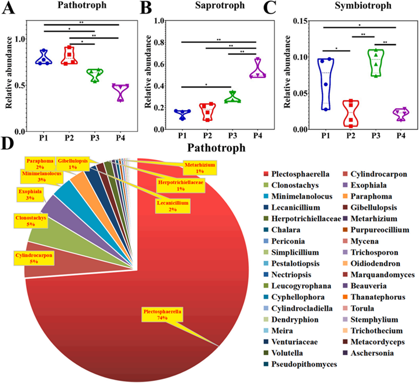 图4 不同土壤水分处理下林下三七根际真菌微生物群落的FUNGuild表型预测