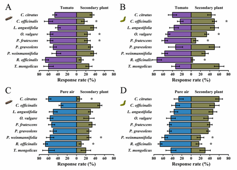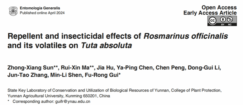 2024年4月18日,我校生物安全研究团队在农林科学1区TOP期刊Entomologia Generalis(昆虫学研究类排名第一期刊,IF=6.9)发表题为“Repellent and insecticidal effects of Rosmarinus officinalis and its volatiles on Tuta absoluta”的研究论文,报道了团队充分利用云南生物多样性资源优势,筛选特色驱避植物防控重大入侵害虫番茄潜叶蛾的方法,为构建推拉技术体系(push and pull strategy)对农业害虫进行生态防控奠定了基础。