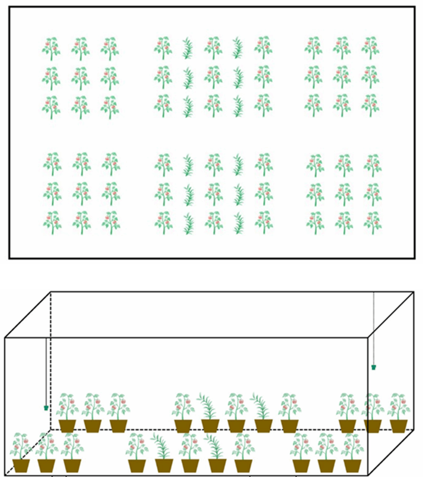 推-拉技术(push and pull)是近年来发展起来的一项基于利用功能植物防控害虫的新型生态防控技术。本研究经过大量的生测筛选,从常见的功能植物中筛选出能显著驱避番茄潜叶蛾的迷迭香和碰碰香,并且鉴定出具有驱避效应的特定挥发物。在此基础上,将驱避植物和特定挥发物应用于温室大棚中,显著减少了番茄潜叶蛾的着虫数和产卵量,降低番茄受害率40-50%。同时,团队还筛选出了诱集番茄潜叶蛾及其天敌昆虫的诱集植物。相关技术申报了2项国家发明专利和2项国际发明专利,目前正在大田开展推拉技术对番茄潜叶蛾的生态防控示范与推广。