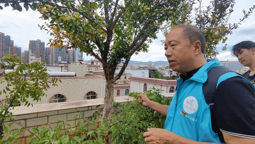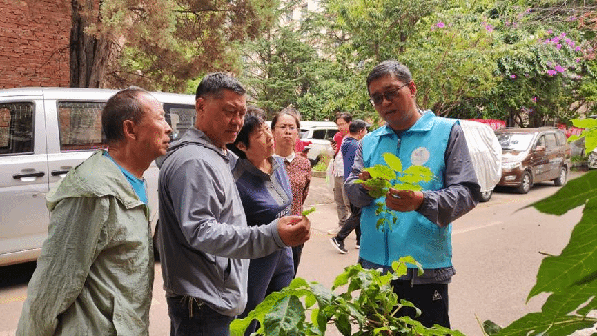 农业害虫防控专家张宏瑞教授讲解社区内绿化树上的害虫种类及其防控技术