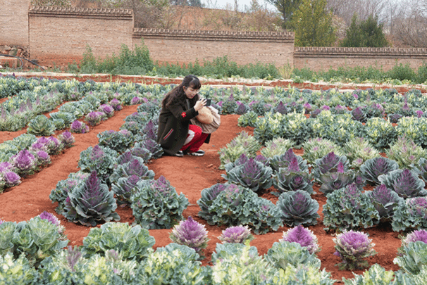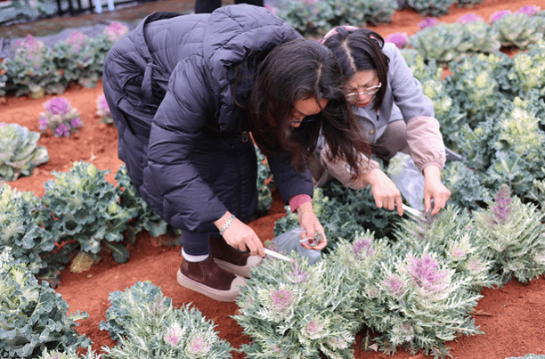 师生打卡牡丹园、采摘零农残的羽衣甘蓝