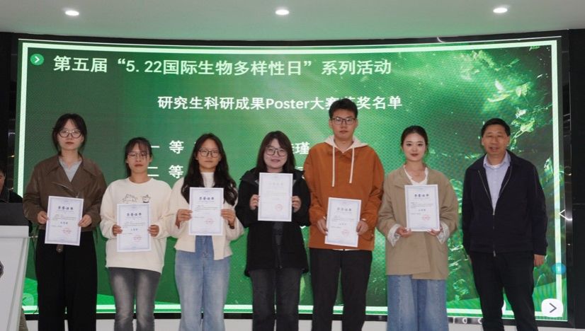 在东校区共享交流空间隆重举行“万物共生 和美永续”第五届“5.22国际生物多样性日”系列活动闭幕式暨颁奖典礼。研究生处处长桂富荣、学生处副处长杨志新、校团委副书记杨勇应邀出席。学院党委书记陈斌、副书记李春艳及各党支部代表、团学办及获奖同学代表参与此次活动。