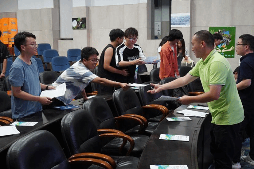 宣讲结束后,美邦药业的工作人员们收集了有意向加入美邦药业的同学们的简历并分组进行初试。