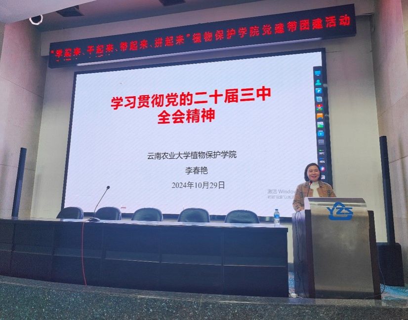 1028日,色情卡通 围绕学习贯彻习近平总书记给普洱民族团结誓词碑盟誓代表后代的重要回信精神、党的二十届三中全会精神,在报告厅开展“学起来、干起来、带起来、拼起来”党建带团建主题活动。学院党委副书记李春艳、学生第一党支部全体党员、2022--2024级植保1班团员代表、学院全体辅导员共计60余人参加。
