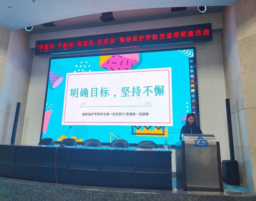 之后,支部党员袁雨和唐敏分别以“学风建设 关乎你我”、“明确目标 坚持不懈”为主题分享了自己的学习经验,2022级、2024级植保1班学生代表分享了班级学风建设成果。他们表示,学习是一场持久战,只有找对学习方法,才能达到高效学习的目的。要带领团员青年培养文明的生活和行为方式,发挥自我的主动性和创造性,努力建设和谐的学习氛围和学风环境。