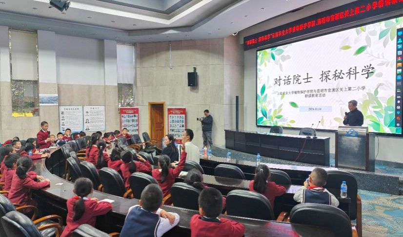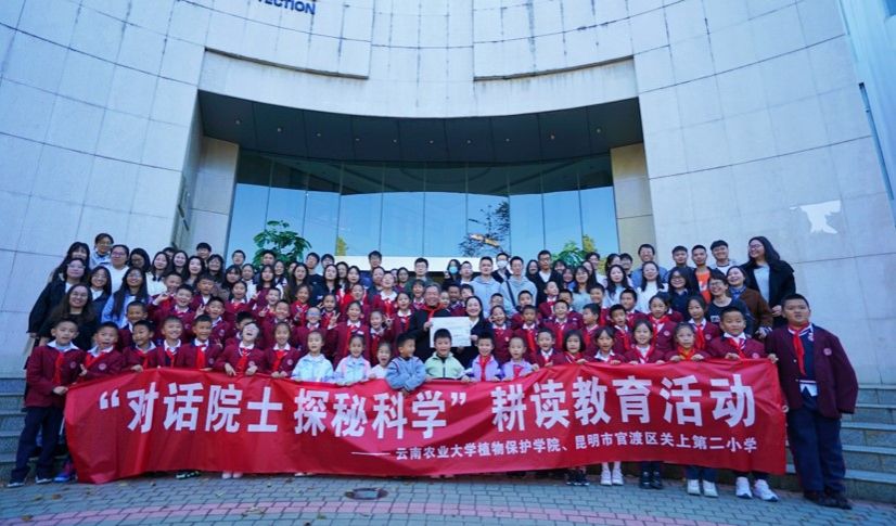 与官渡区关上第二小学联合开展 的“对话院士 探秘科学”耕读教育活动在学校举行。“时代楷模”朱有勇院士出席活动并同孩子们开心互动,院长蔡红主持活动。云南省青年科技工作者协会副会长、昆明市中小学科技创新协会会长胡磊、关二小校长王蜃淋、学院党委副书记李春艳、团学办有关人员、2024级学硕班学生代表及关二小师生代表共计120余人参加活动。