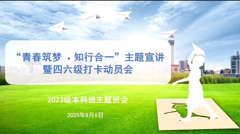 为加强学生暑期安全教育,进一步丰富学生暑期学习成长体验,增强学生综合竞争力,86日上午,色情卡通 对2023级本科班同学开展了 “青春筑梦 知行合一”的主题宣讲活动暨四六级英文考试备考打卡动员线上会议。会议由辅导员周颖老师主持,2023212名同学按时参加了线上会议,学院党委书记陈斌、暑期三下乡社会实践团带队教师和淑琪、魏朝霞、李羲、刘永临老师参加了此次活动。