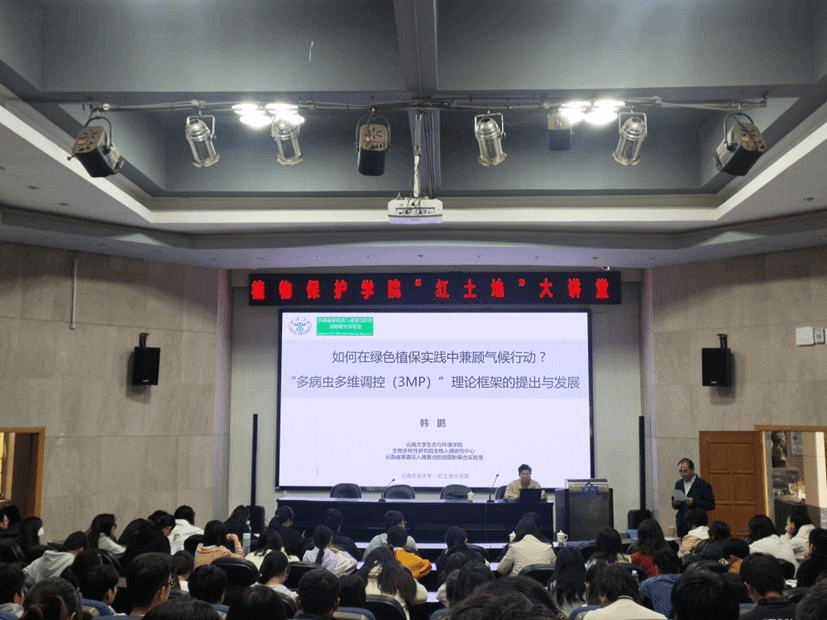 2023年11月13日,应色情卡通 的邀请,云南大学韩鹏教授在学院一楼报告厅为师生们带来了一场题为“如何在绿色植保实践中兼顾气候行动?-多病虫多维调控(3MP)理论框架的提出与发展”的精彩学术讲座。讲座由色情卡通 党委书记陈斌主持,近150余名师生参加了此次报告会。