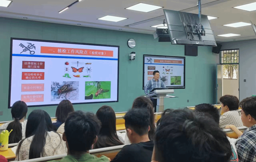 动植物检疫系邀请昆明海关二级巡视员蒋小龙高级农艺师,于2024年4月16日下午在现教中心养正楼B101为2022级动植物检疫专业学生上了一堂别开生面的植物检验检疫法规课。