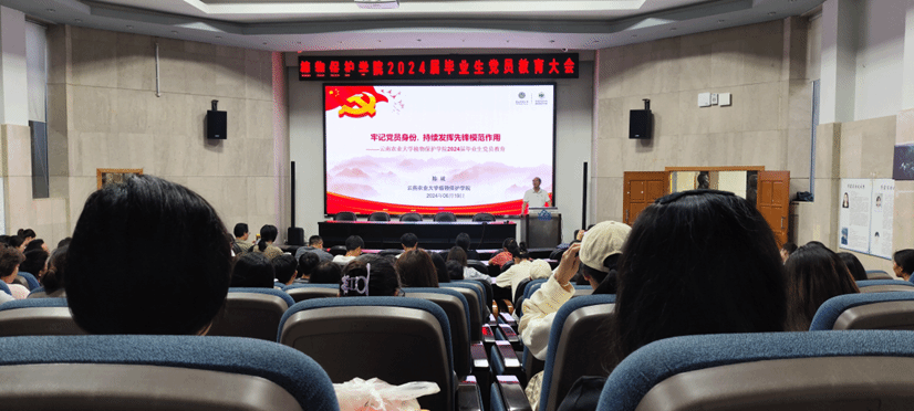 党委在学院报告厅举行“2024届毕业生党员教育大会”,学院党委书记陈斌、院长蔡红、组织员陈齐斌、党务系统管理员王一及毕业生党员、积极分子及各支部支委150余名党员参加了会议。会议由学院组织员陈齐斌主持。